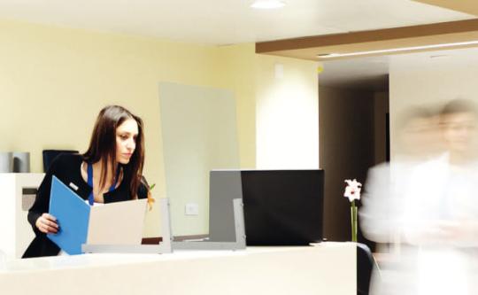 Schutz auf beiden Seiten. Nicht immer geht es vollständig kontaktlos. In manchen Bereichen ist das menschliche Aufeinandertreffen unerlässlich. Damit Mitarbeiter, Kunden und Besucher auch in diesen Situationen geschützt sind, hilft ein Spuckschutz. Schutz auf beiden Seiten – passend für jeden Einsatzort.